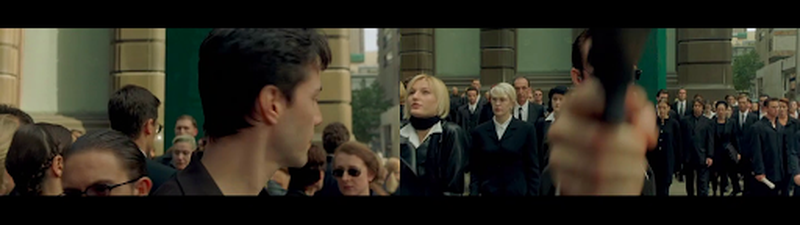 In THE MATRIX, Neo stares at a passerby that stands out from the crowd, only to be checkmated in one move by an adversary that he never even saw. I don’t know about you, but I have quite a few games that ended this way. Fair use image.