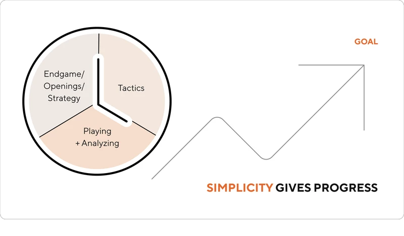 The rule works like this: spend one-third of your training time on tactics, another third on playing games with focus (and analyzing them), and the last third on anything else—like openings, endgames, or strategy.