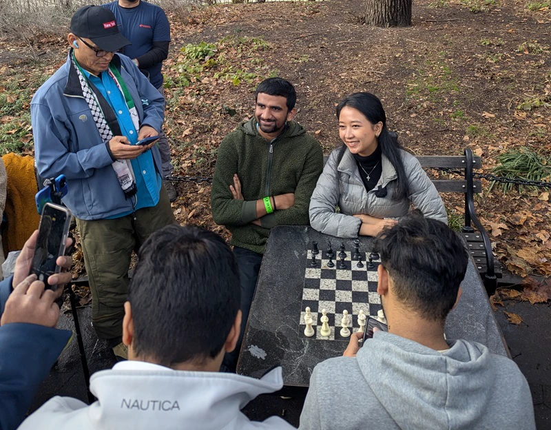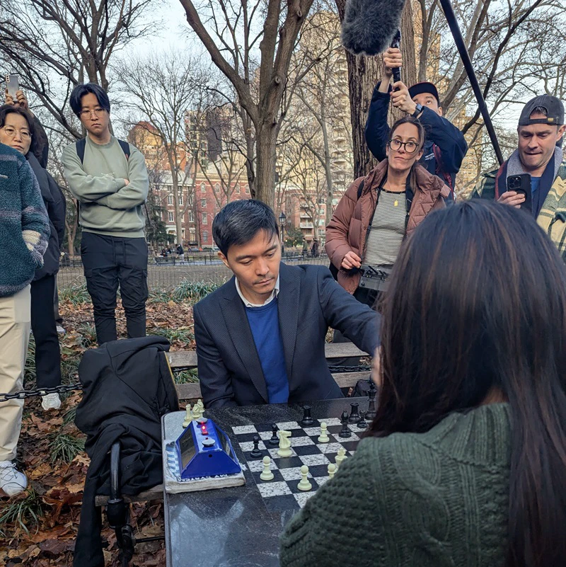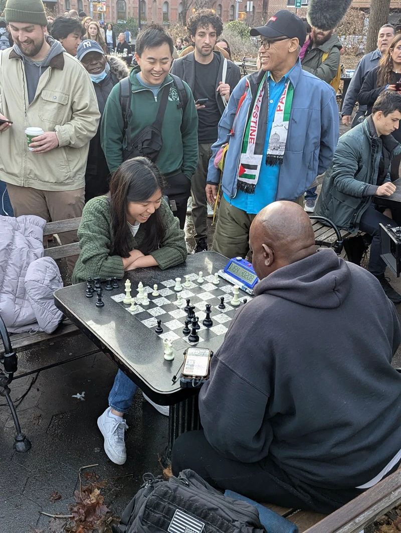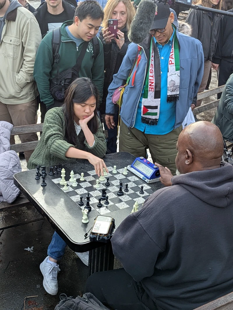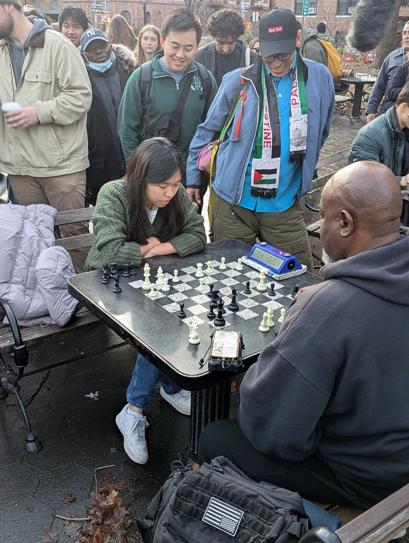 After the ChessBase India Meetup ended - another surprise - IM Carissa Yip (US Women's Champion / Olympiad Gold Medalist / Phenom) was playing a Park regular with crew filming - and I think also a livestream!